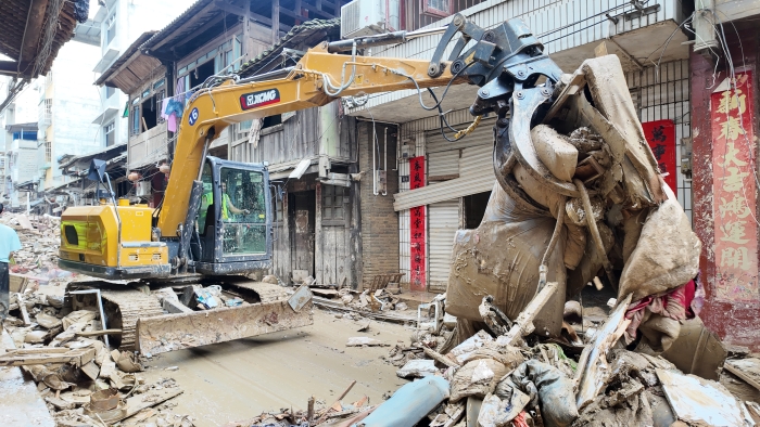 灾情就是命令,徐工迅速联动当地经销商,连夜组建抢险突击队,15台挖掘机星夜奔赴 蓝莓TV高清播放,30余名党员干部冲锋在前,“徐工金”昼夜不息,以钢铁臂膀疏通道路,抢通生命线,为救灾赢得宝贵时间。