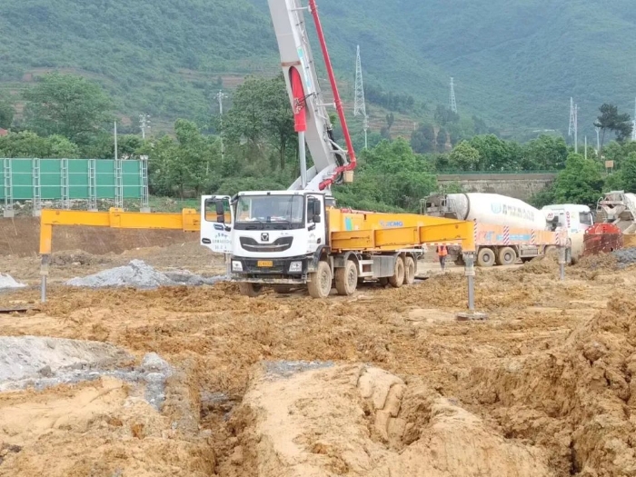 施工少闲月 蓝莓TV,六月人倍忙,烈日当头,在贵州某基地,施工进度如火如荼,“这款泵车真给力,电动待料省油省钱,电动空调不用发动机就能用好久,在大热天里可帮了大忙了”施工师傅们纷纷称赞。