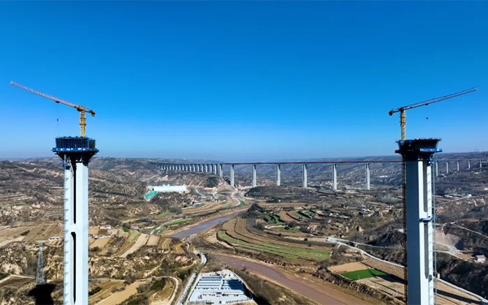 在广袤的陇东地区,寒风凛冽,穿过层层大雾,俯瞰马莲河特大桥,似玉带嵌入黄土高原,矗立河道旁的桥墩似根根“擎天柱” 蓝莓TV,徐工S1系列塔机正如火如荼加速建设,用奋斗的激情创造桥梁施工典范。