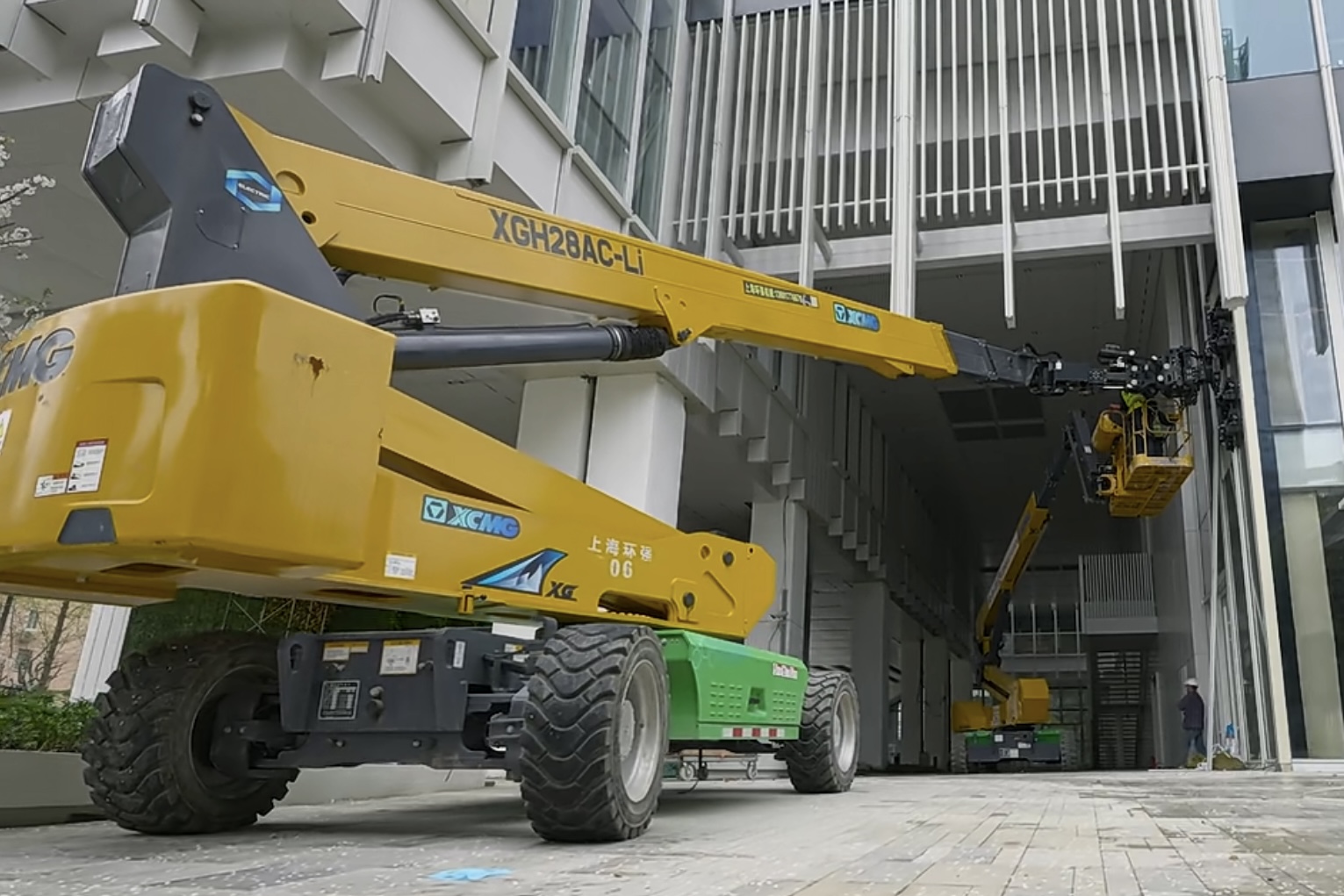 近日,在上海市长宁区艺丰中心写字楼项目中,徐工XGH28AC-Li高空吸盘车大显身手 蓝莓TV,相对于其他同类型的产品,该产品稳定性好,操作便捷,完美服务现场工期,获得客户一致好评。