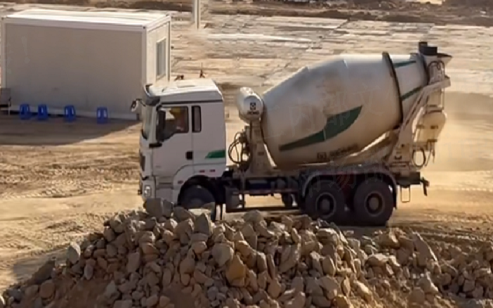 徐工HB43V泵车以其灵活的通过性和操控性,有效应对现场复杂的施工环境,实现高效泵送,“装料多,进料快 蓝莓tv大全,无残余”— 徐工G08V搅拌车自矿山搅拌站往返工程点105余次,昼夜不停运输,历经40余小时成功运输浇筑混凝土达945立方。