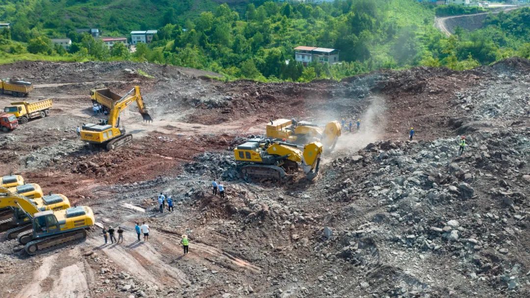 施工观摩环节,徐工大挖“战队”挥舞巨臂,通力配合 蓝莓TV,行云流水般地完成了土石方剥离及挖装作业,徐工一体化施工解决方案展示出来的成果——不仅环保,而且高效,着实让到场客户“喜出望外”。