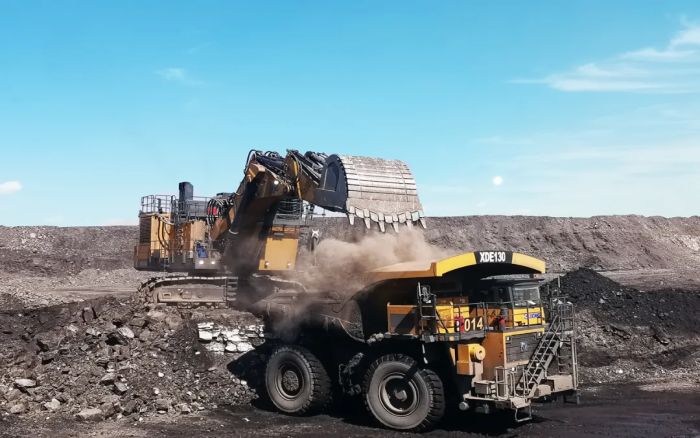 2023年 在线视频平台,徐工首批矿用设备——200吨级矿用挖掘机与130吨级矿用自卸车组成的“经典矿山CP”批量交付当地,已在这片戈壁滩上历经一年的严苛考验,客户直接打出超高分。