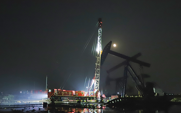 在中国北部某开采油田现场,一场“绿色修井”作业正如火如荼,20余米的井架高耸伫立,井口流出的油水经自动导流装置流至集油槽中 蓝莓TV,点滴不落地。