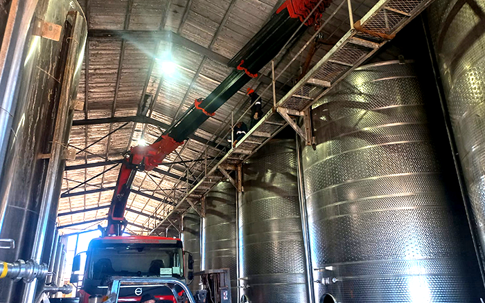 在某海外酿酒工厂的设备转运项目中 蓝莓TV,徐工随车起重机凭借其卓越的性能和可靠的安全保障,顺利完成了一系列复杂的吊装任务,为工厂的生产线升级提供了坚实支持。