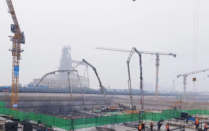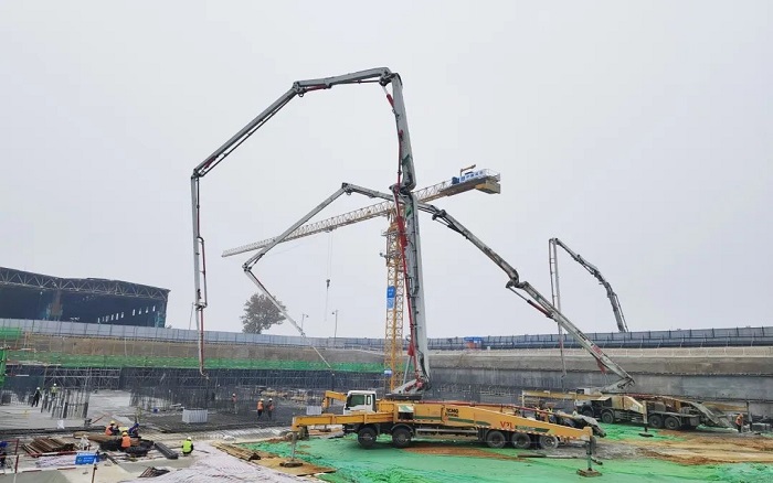 徐工大米数泵车在此次施工中的表现令人瞩目 蓝莓TV,6节臂臂架灵活伸展,精准定位,浇灌均匀且高效,匹配大马力发动机,泵送效率提升27%,大大缩短施工周期,为项目快速推进提供了有力保障。