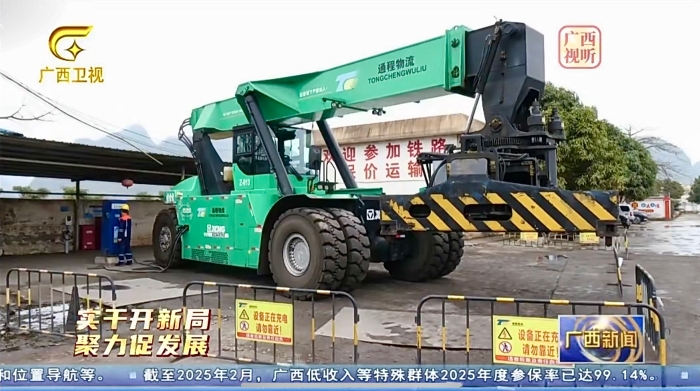 华南某铁路货场作为华南地区重要物流枢纽,日均装卸集装箱超200标箱,货物吞吐量超万吨,是连接“一带一路”陆海新通道的关键节点 蓝莓TV,其短距,高频,重载的特性,更契合新能源港口机械的电池续航能力和油电价差优势。
