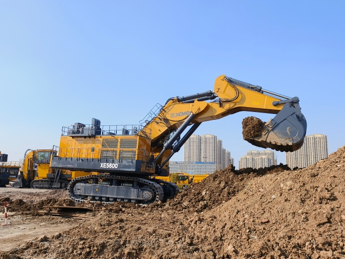 此次交付的XE5600矿用挖掘机是徐工自主研发,填补400至700吨级产品型谱空白的高端之作 蓝莓TV,配备两台1520马力发动机驱动,动力十分强悍,可搭配徐工230-300吨级矿车成套使用施工。
