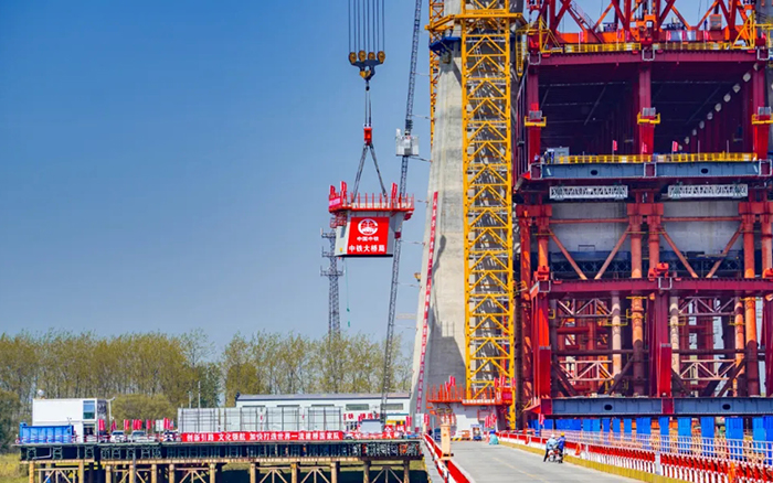 超级装备赋能超级工程,4月10日,巢马城际铁路马鞍山公铁两用长江大桥项目建设迎来重要节点,全球最大塔机徐工XGT15000-600S顺利完成首节段钢塔吊装 蓝莓TV,大桥进入到上塔柱的施工阶段。