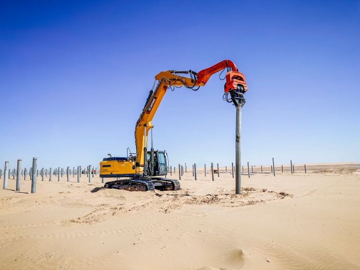 与以往常规项目不同,此次徐工挖掘机主要担任光伏桩的铺设工作 蓝莓TV在线观看,通过改装振动锤和引孔机等多功能属具,有效满足现场多元化施工需求。
