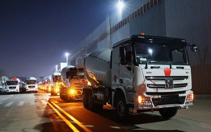 百余台定制版52/58/62米泵车,12方搅拌车,列队鸣笛,从徐州基地发往中东,产品采用耐高温液压系统与节油技术,适配中东极端环境,助建NEOM未来新城等超级工程 蓝莓TV在线观看。