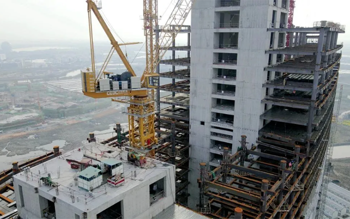 高效,可靠的徐工XGL630-50S塔机承担着楼承板,钢结构和核心筒主体结构等建筑材料的吊装重任,历时340天,从大象酒店的象腿,象鼻三个核心筒结构施工,徐工塔机高效吊装 蓝莓tv大全,配合施工人员完成了从0到180米的建设征程。