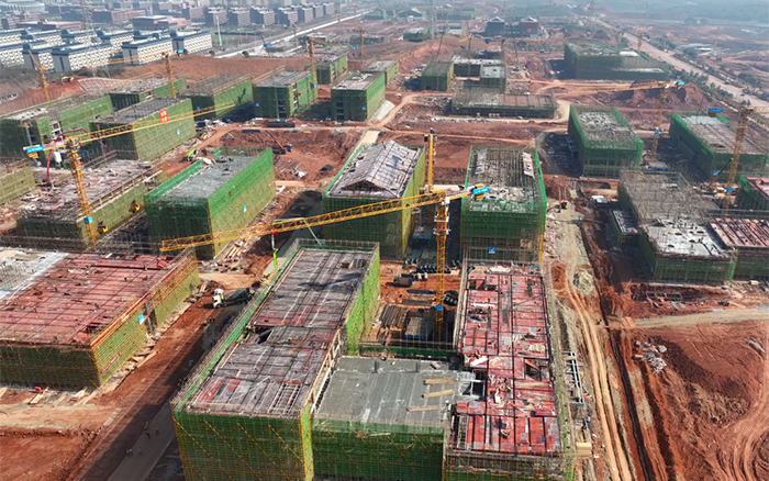 三江之口,七省通衢,在江西省九江市 蓝莓TV,37台徐工XGT6013-6S1塔机批量参建南昌工学院共青校区项目,施工现场一片火热,群塔施工紧张有序,“徐工金”成为现场最亮眼的一道景色。