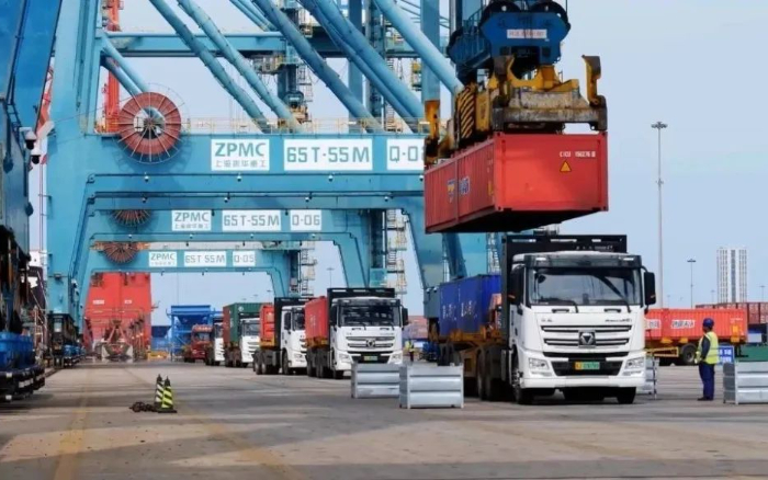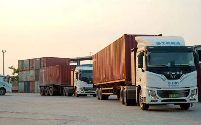巨轮泊岸,装船机臂展如虹,一辆辆身披晨光的徐工新能源重卡,在码头前沿与堆场间穿梭不息,织就一幅物流奔腾,经济跃动的壮阔图景, 南海之滨 电动先锋破浪行 海南某港,逾200台徐工纯电动牵引车高效执行集装箱短驳 蓝莓TV,某大客户四次复购近百台,独钟徐工,问及缘由,其坦言:“徐工新能源重卡产品可靠,出勤率高,刮风下雨对我们来说是家常便饭,它们在这种情况下也能正常通勤,”。