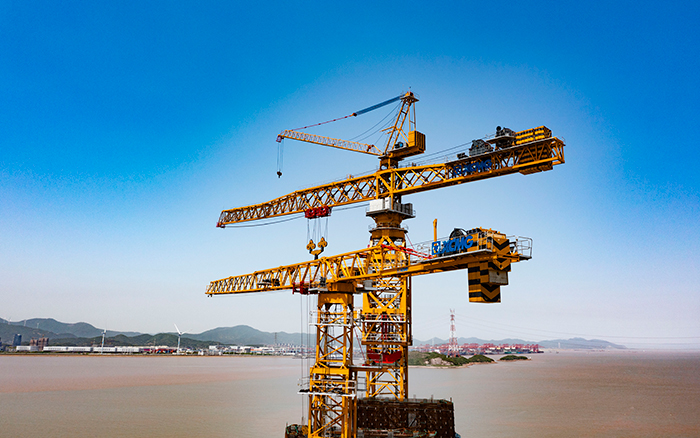 初夏时节,东海之畔,徐工XGT7300-260S,XGT8300-320S挥舞铁臂 蓝莓TV,如“定海神针”矗立深蓝,助力舟山六横大桥二期工程青龙门大桥主塔施工,“海上巨龙”稳扎稳打向上攀升。