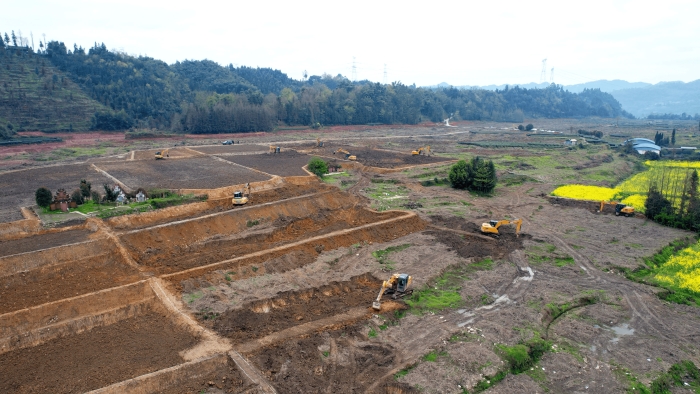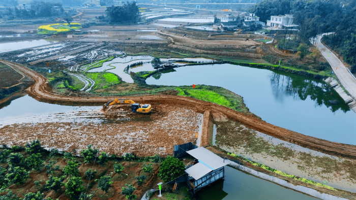 洪雅向东90公里,是仁寿县,作为四川省产粮大县 蓝莓TV在线观看,仁寿曾因田块细碎导致机械化率不足,在5000亩的高标准农田建设中,项目方集结18台徐工挖掘机,以“日均30多亩”的速度抢抓工期。