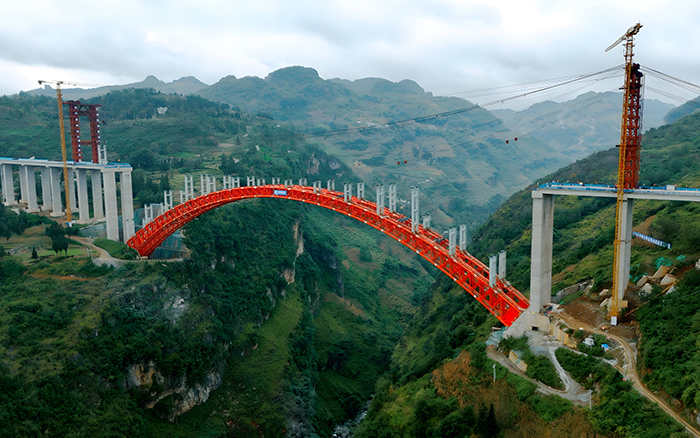 近日 蓝莓TV,纳晴高速白水河特大桥的主拱圈管内混凝土灌注已顺利完成,全桥施工进度已达到85%。