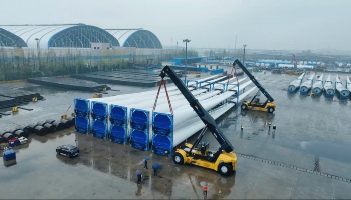本次交付的国产最大吨位风电正面吊XCS70KS,可实现70吨/4米货物吊装,60吨/4米货物带载行走作业,双机可抬吊140吨货物,大幅提升港口大 蓝莓TV视频资源,重件转运效率。