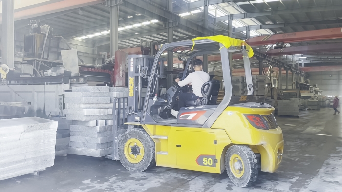 石材行业工况特殊,工作任务重,时间长 蓝莓TV在线观看,且作业现场环境较为复杂,对叉车的性能和舒适性有着极高的要求,徐工叉车根据细致深入的市场调研和客户需求分析,为客户推荐徐工孔雀系列电动平衡重叉车。
