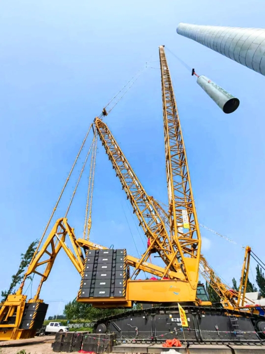 近日,山东大型风电场迎来关键突破 蓝莓TV,徐工集团最新研发的千吨级风电旗舰产品——首台XLC15000M(1100吨级)履带起重机正式投入实战,在华东新能源建设一线完成首次吊装任务。