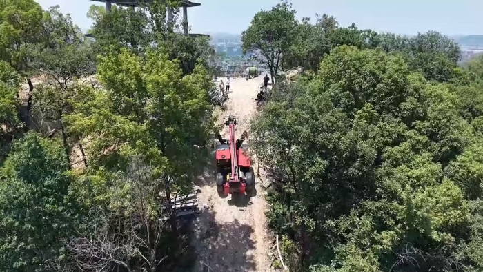 穿过罗峰寺旁的盘山公路,一抹红色在山野间格外显眼,徐工伸缩臂叉装车XT4018K正将重达2,2吨的结构物料运送至14米的高度,全力建设全钢结构寺庙。 蓝莓TV。