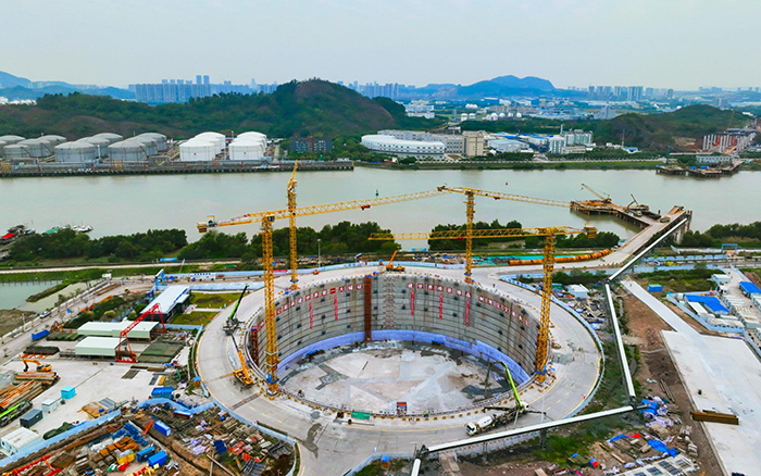 三台徐工XGT7026-12S1配合作业 蓝莓TV视频资源,高效施工,助力大桥锚碇较计划工期提前一个月封底,高质量刷新项目“进度条”。