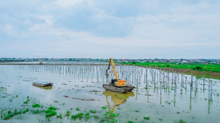 在这片充满希望的土地上,徐工水上打桩机正以卓越的性能、高效的施工,助力滨海县在“渔、电、环保”三方面实现价值提升,为构建绿色、低碳、循环发展的经济体系贡献“徐工力量”。