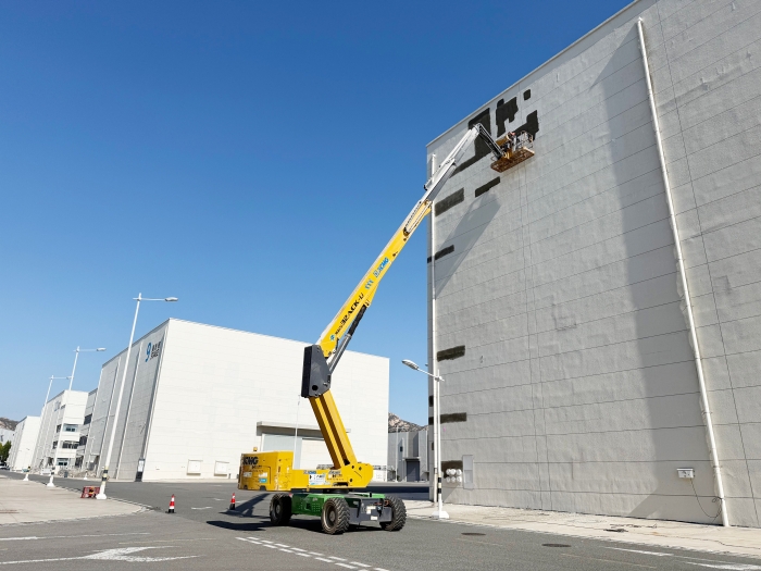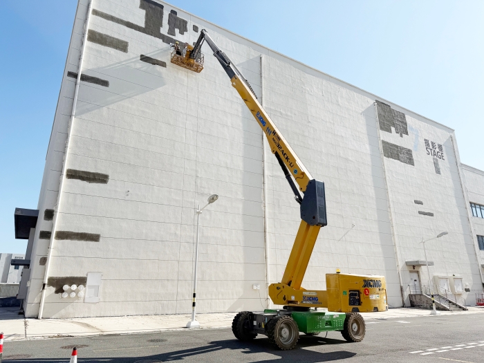 近日,在青岛东方影都摄影基地 蓝莓TV,徐工XGS32ACK-Li高空作业平台出色完成了多个大型摄影棚的墙面维护任务。