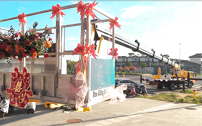 这辆 GKS45A 高空作业车刚完成交付,客户便别出心裁地将其打造成婚车,车头的 “囍” 字鲜艳夺目 蓝莓TV在线观看,车身缠绕的红绸与花束将机械的硬朗感与婚礼的浪漫感巧妙融合,在喜庆的音乐与路人的祝福中,它行驶在婚车队列之首,成为新人幸福旅程的 “硬核” 见证者。