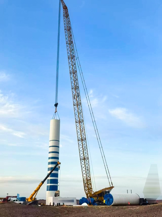 在主吊对叶片根部进行控制 蓝莓tv大全,辅吊对叶尖进行牵引的协同作业模式下,具有柔性特征的大型叶片在升空过程中始终保持最优姿态,最终在百米高空达成毫米级的精确对接。