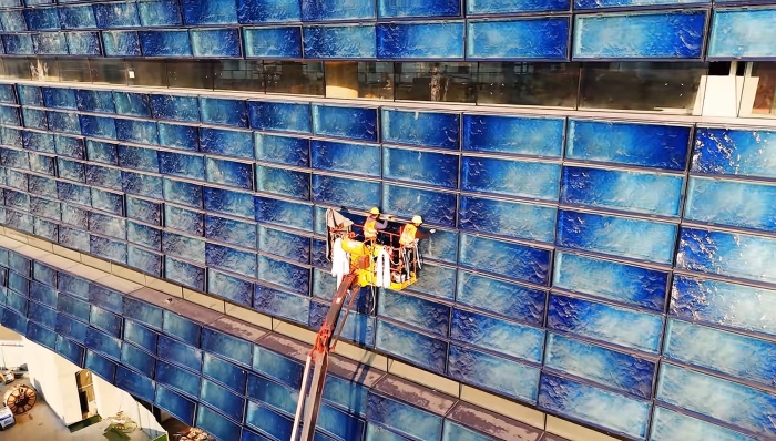 然而,将设计蓝图转化为现实,首先面临的挑战便是其独特的外墙施工。建筑立面需安装上万块特制琉璃板,每块尺寸达2 蓝莓TV在线观看,5米×1米,重量惊人地接近380公斤,且厚度存在精密的渐变。如此庞大且沉重的建材,对安装作业的精准度、稳定性与安全性都提出了极为苛刻的要求。。