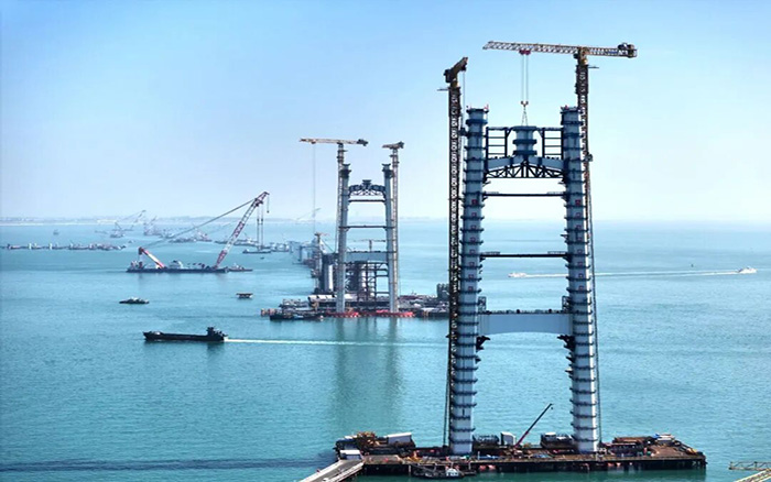 此次主塔建设任务面临 “海面精准吊装”与“复杂气象环境” 的双重考验: