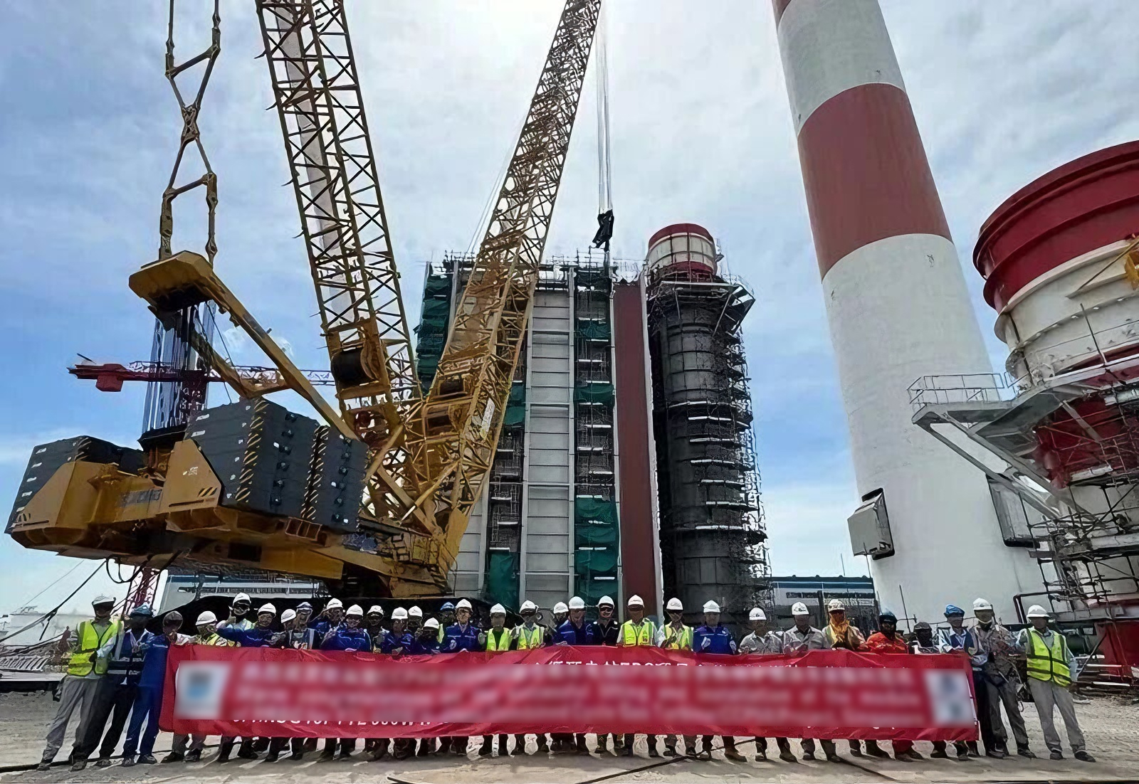 近日,在东南亚600兆瓦联合循环电站项目建设现场 蓝莓TV,徐工XGC16000(1250吨级)履带起重机圆满完成余热锅炉全部受热面模块的吊装任务。