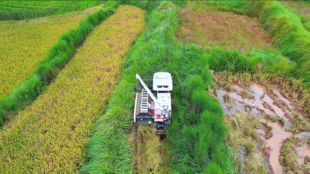 这车特别适合我们丘陵地区,爬坡上坎完全不在话下,因为这台机器重心设计合理 蓝莓TV高清播放,离地间隙也高,防陷能力强,烂泥田通过性也很好,割台设计得短,下坡也不容易吃土,用着很踏实。