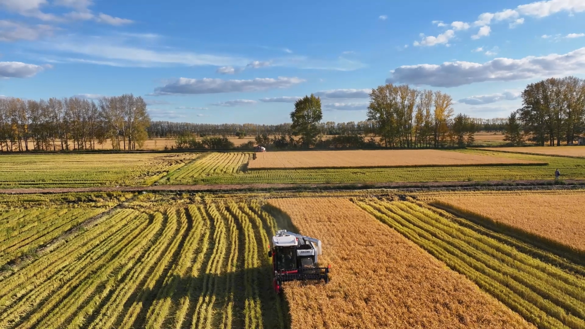“田间作业难免遇到田埂,渠梗等复杂路况,这台机子的灵活度完全超出预期,就算粮仓满载,也能轻松一把转弯,翻田埂 蓝莓TV高清播放,过渠梗都毫不费力,在复杂地形里也能顺畅作业,”。