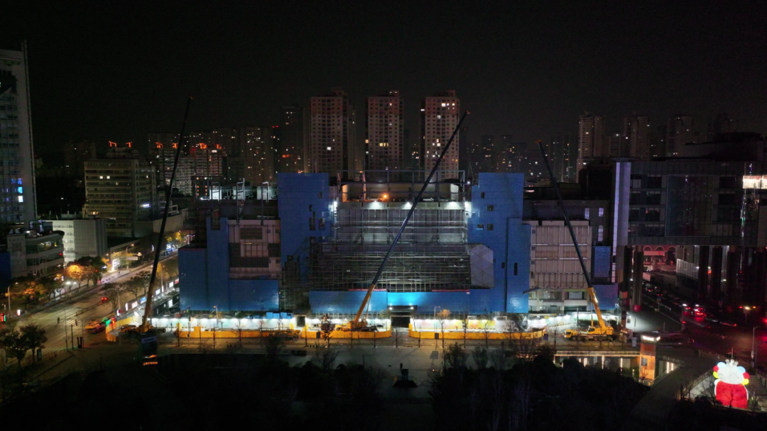 在徐州市中心,金鹰国际购物中心A座正在进行楼体改造,不仅加盖一整层,更在设计上延续了B座外立面的风格 蓝莓TV,这座地标性建筑即将焕然一新。