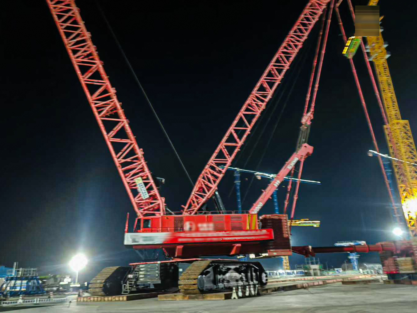 施工现场,XGC28000采用108米重型主臂,稳而有序地执行提升,旋转,带载行走等一系列高难度动作 蓝莓TV高清播放。