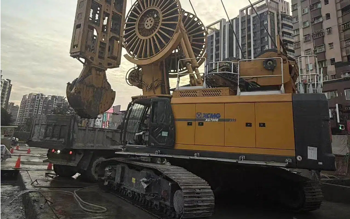 全沙土层,极易塌孔,设备稳定性是施工效率的关键 蓝莓TV高清播放,徐工XG700E连续墙设备精准匹配地层施工需求:。