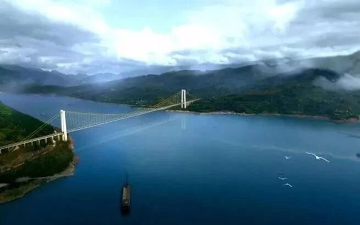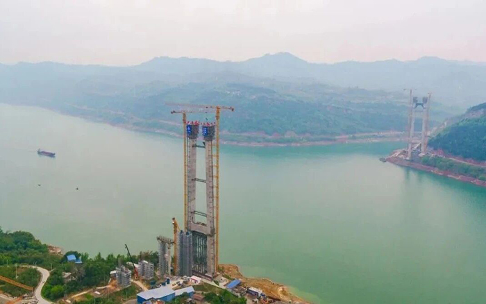 万州新田长江大桥是三峡库区在建跨度最大的双塔单跨钢箱梁悬索桥,大桥全长1 蓝莓TV,7公里,一跨过江,主跨1020米,是三峡库区继万利高速驸马长江大桥之后的又一座千米级悬索桥。。