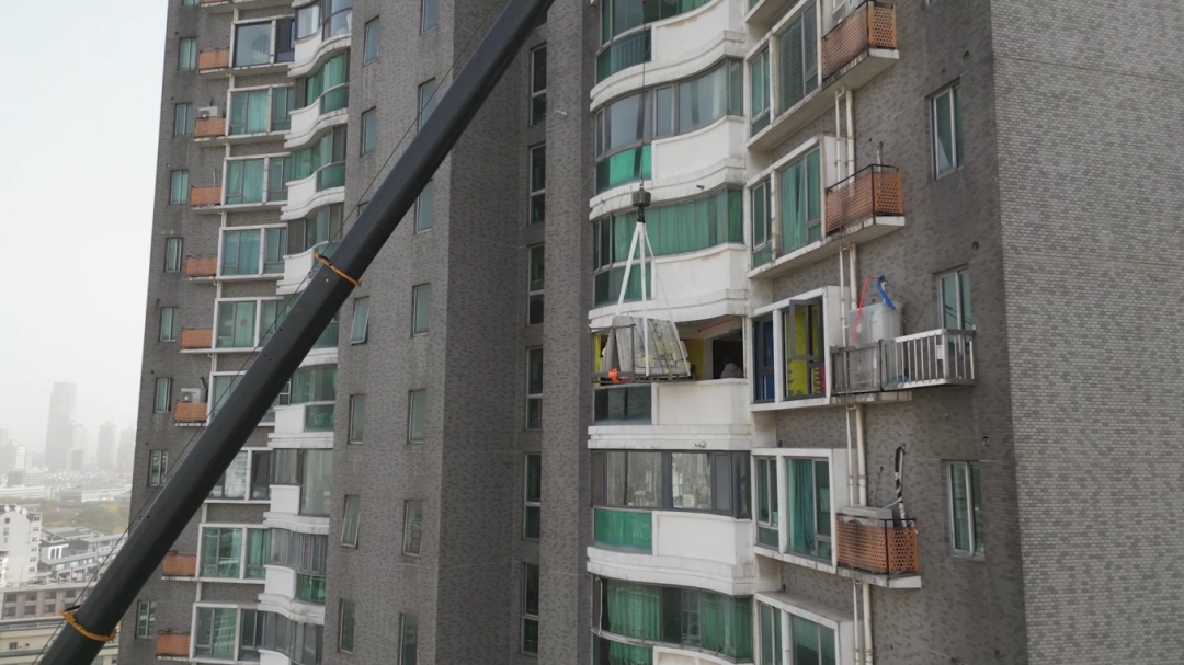 客户高层住宅装修,需要把一整摞室内板材送到72米高的窗口,吊装跨度达到39米,起重机需要在半空稳稳停住,等室内工人将一张张板材从窗口搬进去——这对设备的稳定性提出了极高要求 蓝莓TV。