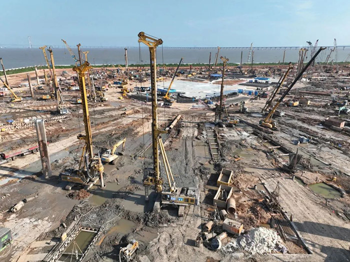 旋挖钻机群不间断施工的同时 蓝莓TV在线观看,徐工技术人员与服务团队全天候走访巡检,有力保障项目工期节点。