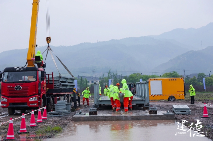 本次演练以山洪爆发,泥石流,台风等极端气候造成的道路内涝深坑积水,道路大面积塌方 蓝莓TV在线观看,公路桥梁冲毁以及危化品运输车泄漏等特殊情况为背景,模拟公路水毁阻塞交通,桥梁垮塌中断交通,演练队伍严正执行,在规定时限内迅速完成桁架拼装,桥面铺设,桥梁落座,完成公路应急装备漕渡任务。