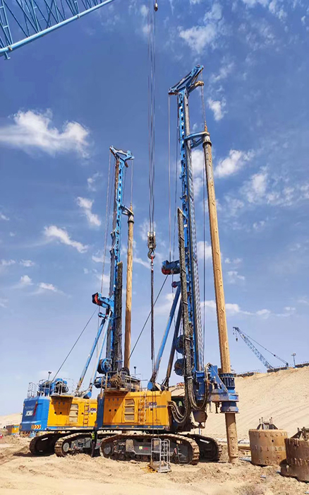 客户共采购4台徐工大吨位旋挖钻机,主要进行 NEOM新城地下车库与轻轨项目施工。施工桩60-90m、桩径2-2,5m、施工深度200m,面对沙土地质,徐工旋挖钻机游刃有余,平均每天完成3根桩的施工。 蓝莓TV视频资源。
