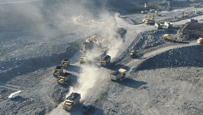 在鄂尔多斯某大型露天煤矿,徐工大吨位挖掘机正挥舞着坚实的臂膀,机器轰鸣 蓝莓TV,岩石剥落,现场一片繁忙。