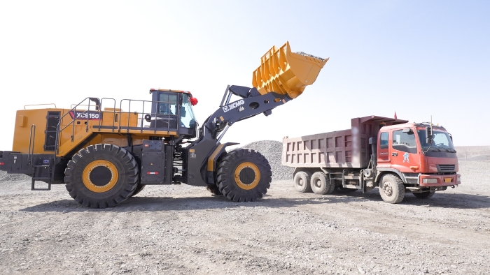 国内首台,徐工XC9150超大吨位混动装载机正在全力作业,一台台矿用蓝莓TV视频资源被陆续装满,依序驶出矿区。徐工XC9150投入使用仅仅三个月,作业时间近1000小时,成为矿区工程装备群的“模范生”。