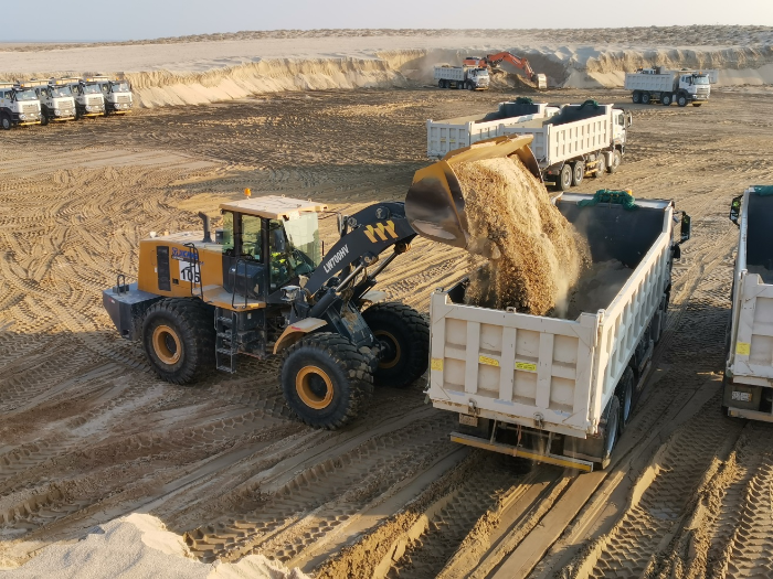 亚洲某国,新建大型公园建设现场,徐工LW700HV与ZL50GN相互配合高效进行着土方作业。2020年,客户开始采购徐工设备,对ZL50的作业性能与可靠性非常满意,随着业务量的不断增加,客户开始考虑大吨位产品。经过当地徐工销售的全力推荐,客户加购了徐工LW700HV装载机,该产品也已优异表现赢得客户的赞赏。配合自卸车,对密度约1,8t/m³的沙土进行转运作业,徐工LW700HV搭配4 蓝莓TV,5m³铲斗作业起来效率惊人。。