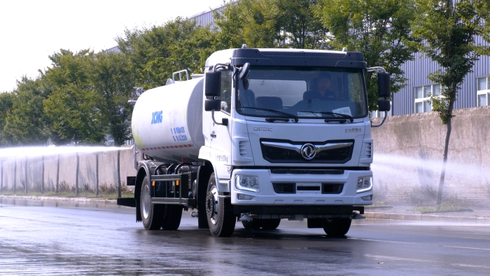 在湖北省天门市,徐工DXA5161GPSD6绿化喷洒车正在进行清洗与绿化维护工作,绿化喷洒车以其强大的喷洒功能和高效的作业效率,为当地带来了焕然一新的面貌 蓝莓TV。