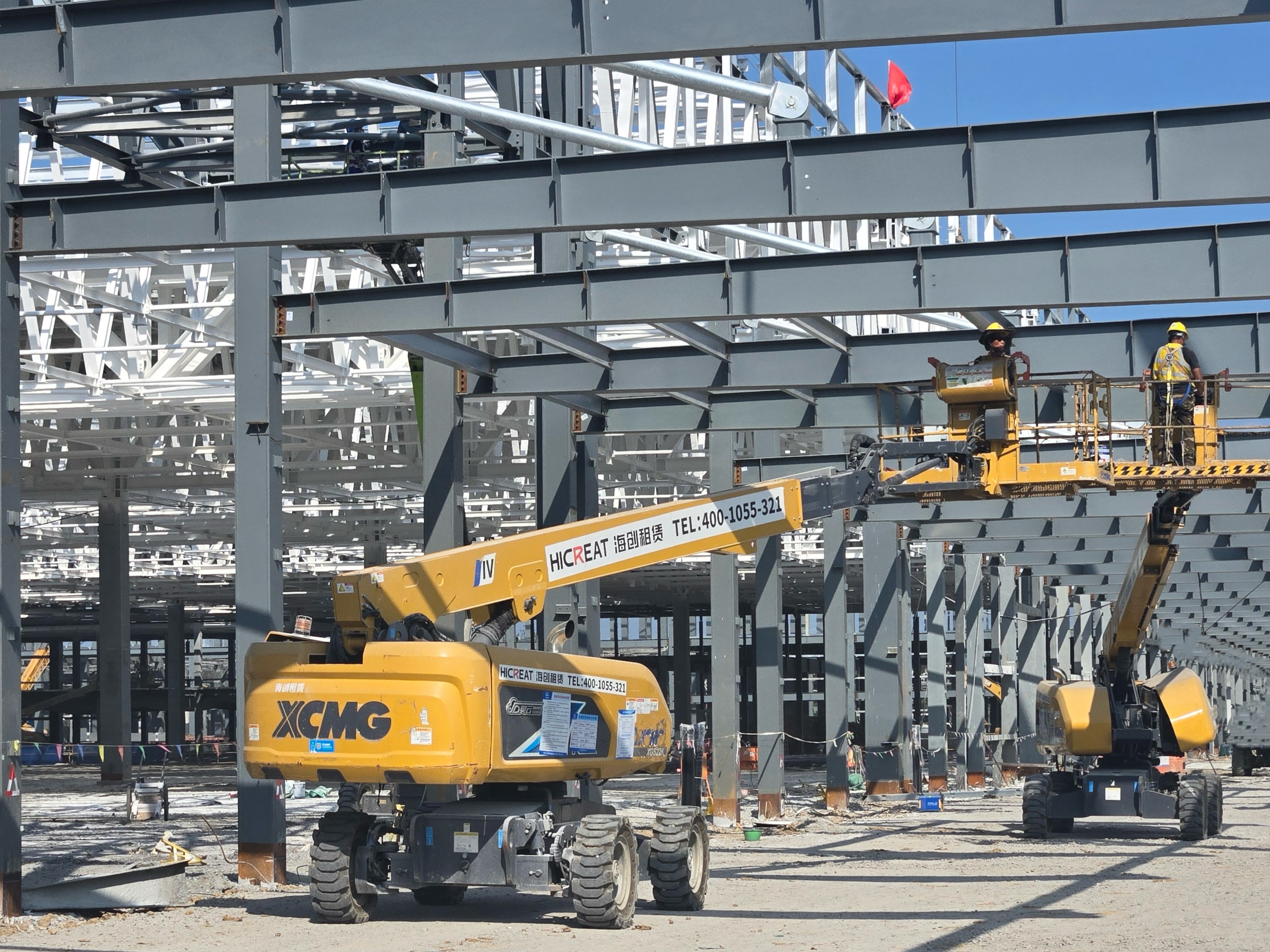 在施工现场,多台徐工高空作业平台同时作业,XGS28K 伸展长臂,将施工人员和工具平稳送至指定高度,其快速的升降和回转动作大大缩短了单个作业点位的施工时间,XGS34K 则在大面积高空作业区域展现出高效率,大范围的作业覆盖能力减少了设备频繁移位的时间损耗,XGS22K 于狭窄区域灵活补位,确保施工进程无死角推进,它们相互配合,使蔚来汽车三期项目的高空施工环节如行云流水般顺畅,有效提升了整体施工效率,大幅缩短了项目工期 蓝莓TV在线观看。