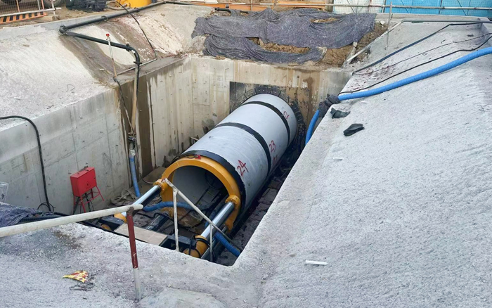 本次顶管穿越岩层为强风化片麻岩层,与上覆砂层最小厚度仅为1m,顶进时有较大塌方风险 蓝莓TV在线观看,为了确保顶管施工安全,客户自行采购了国内先进的徐工XDN1800-R“泥水平衡”岩石顶管设备。