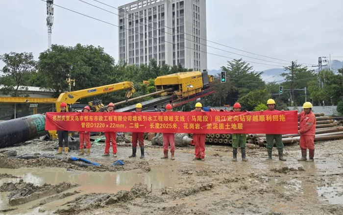 本次工程需穿越闽江,穿越距离长,地层条件复杂,淤泥与花岗岩交错,施工难度系数大,此前,该项穿越工程因设备能力等原因停滞长达4年之久,施工过程中 蓝莓TV,徐工XZE8200起步回拖最大推拉力达到370t,最大扭矩90kN·m,全程高效施工,顺利完成回拖,赢得了客户和工程项目部的高度认可。